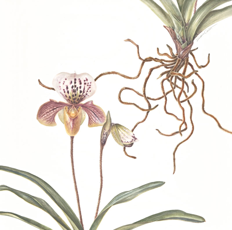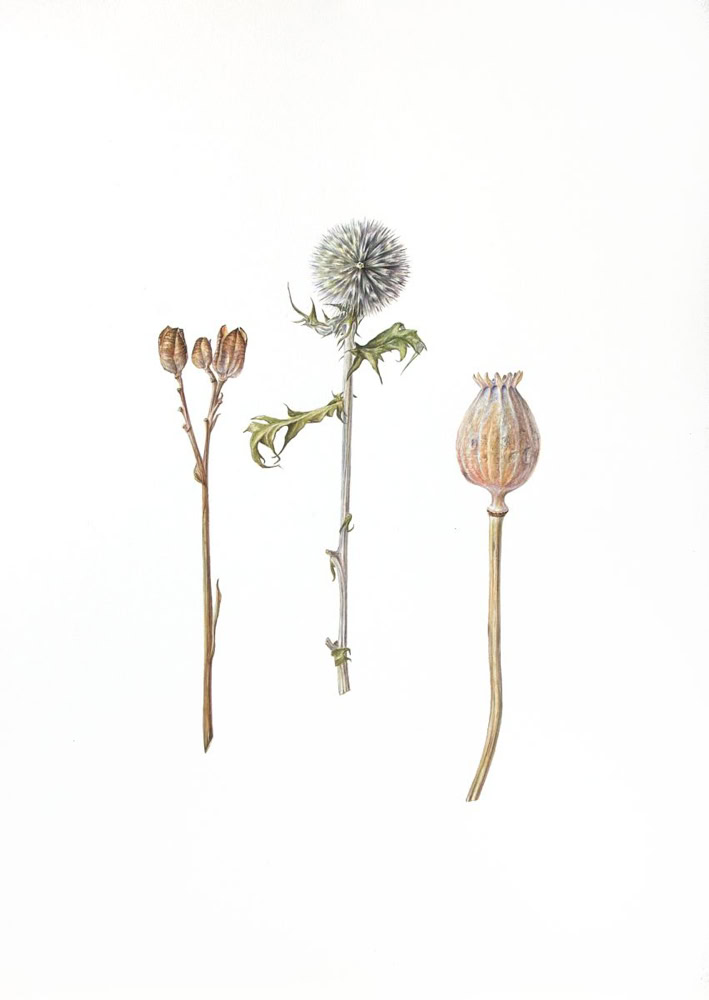 Sophie paints modern botanical watercolours on paper and vellum. Botanical accuracy and realism are key to her work and all subjects are painted from life with daylight. This requires a lot of planning and patience. At the same time, it’s a race against the clock when flowers wilt or move and nature takes its course.