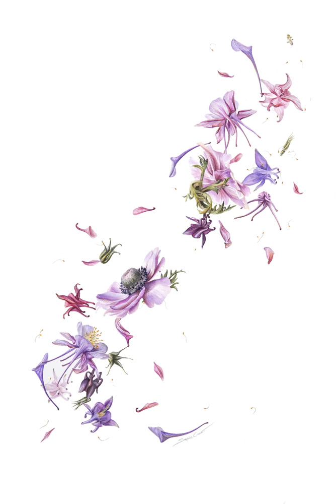 In the ongoing collection WE ARE THE UNIVERSE Sophie puts the beauty of earthly life into the broader context of our universe. Observing details, shapes and forms from nature and connecting them to the magnificent structures found in space, she explores how life is both tranquil and explosive at the same time, flourishing and dying, and how beauty can be found on both sides of these opposites. Each of the paintings is painted in watercolour on paper, using a slow, layering process in which the underlying washes are allowed to shine through. The paintings are also available as Limited Edition Archival Digital Print.
