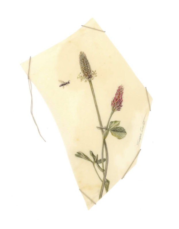 All paintings are created on scrap pieces of vellum and carefully secured with linen yarn against a cream museum board background — mirroring how we try to anchor who we are and what we hold meaningful.
