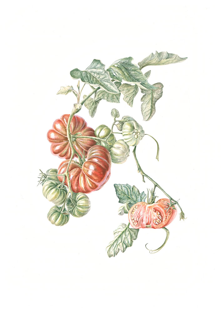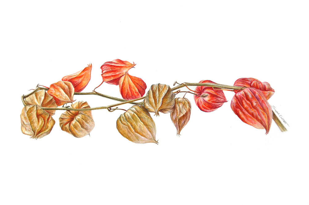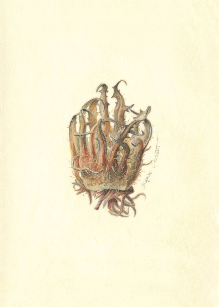 Sophie paints modern botanical watercolours on paper and vellum. Botanical accuracy and realism are key to her work and all subjects are painted from life with daylight. This requires a lot of planning and patience. At the same time, it’s a race against the clock when flowers wilt or move and nature takes its course.